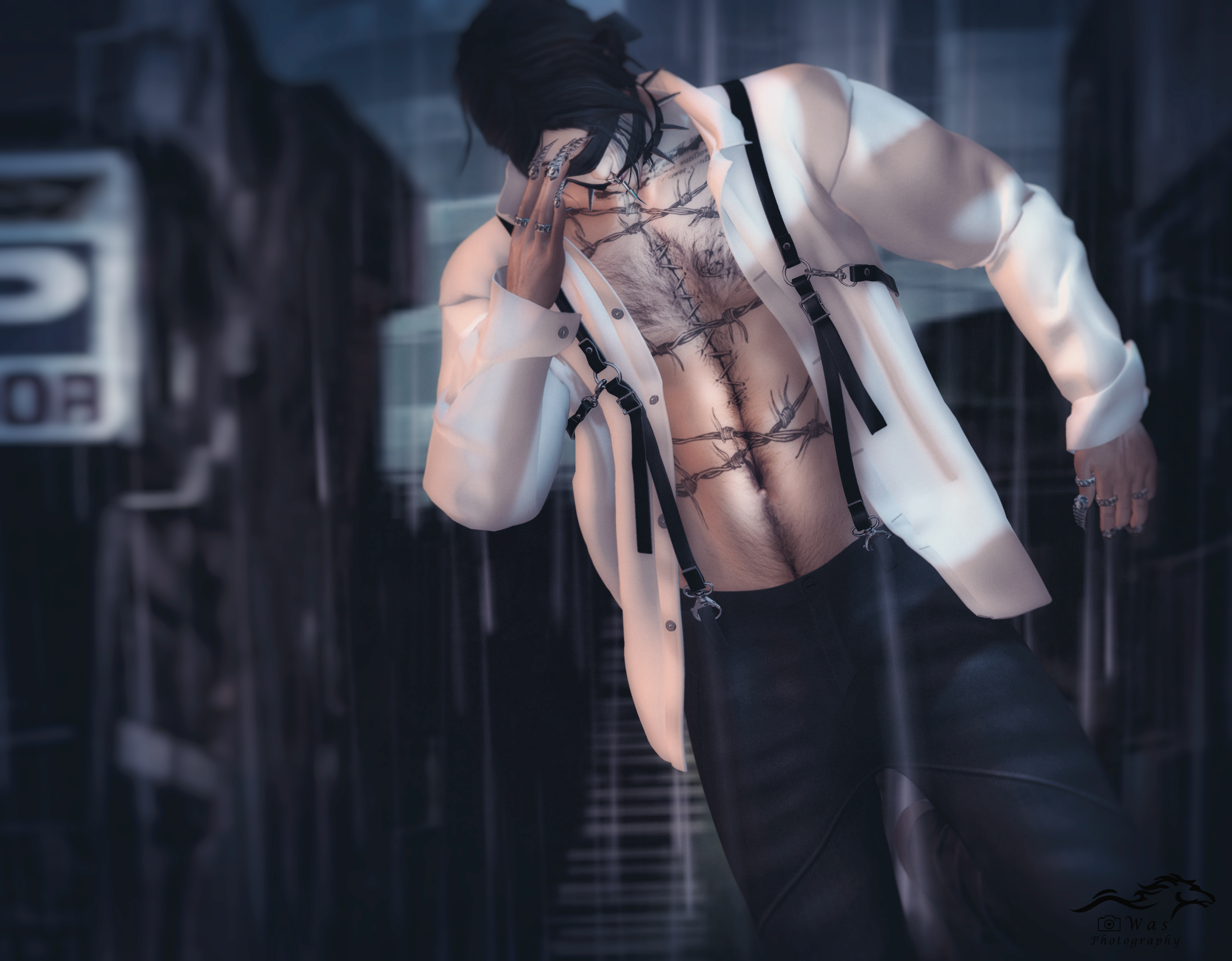 • ::GB:: – Open shirt / in suspender pants /